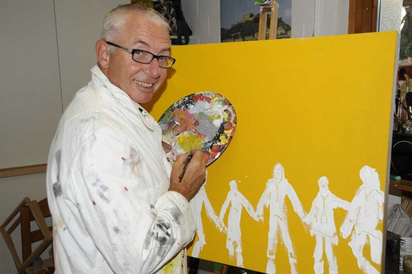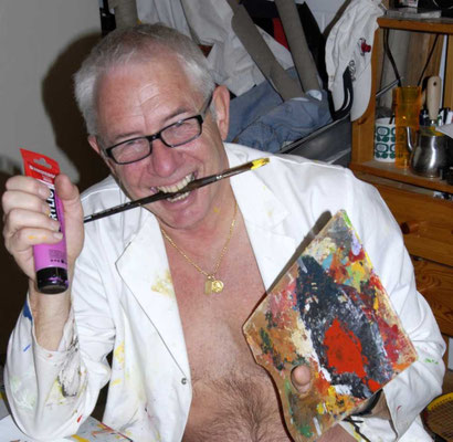 Das oben ohne Bild von mir zeigt eine freudige Situation. Die Idee habe ich im Kopf, Farbe, Pinsel, und Pallette sind bereit.... und los geht es. Das macht Spass! Ich habe in der Kunst keine
